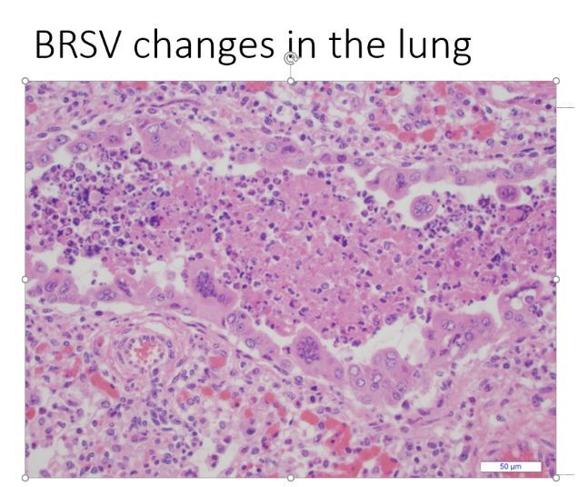 Viruses such as bovine respiratory syncytial virus (BRSV) damage the airway’s ability to clear debris and bacteria as seen on the right-hand side of the image above.