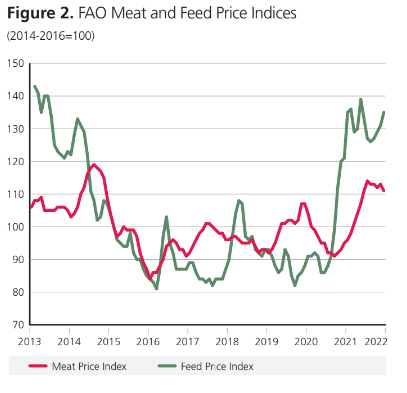 Increased feed, fertilizer, and energy costs squeezed producer margins, causing production growth to subside in some countries. On the demand side, global demand for meat products expanded, reflecting increased economic activities in parallel with increasingly relaxed social-distancing requirements, improvements to supply chains disrupted by the pandemic, growing incomes and rising populations.