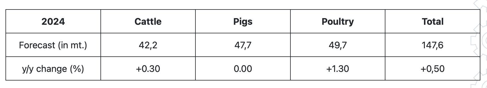 The forecast reflects diverse trends across livestock sectors influenced by economic, regulatory, environmental, and animal health factors.